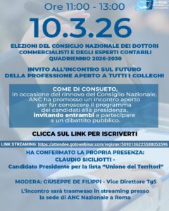 ELEZIONI CNDCEC | INVITO ALL’INCONTRO IN STRAMING SUL FUTURO DELLA PROFESSIONE 10.03.2026